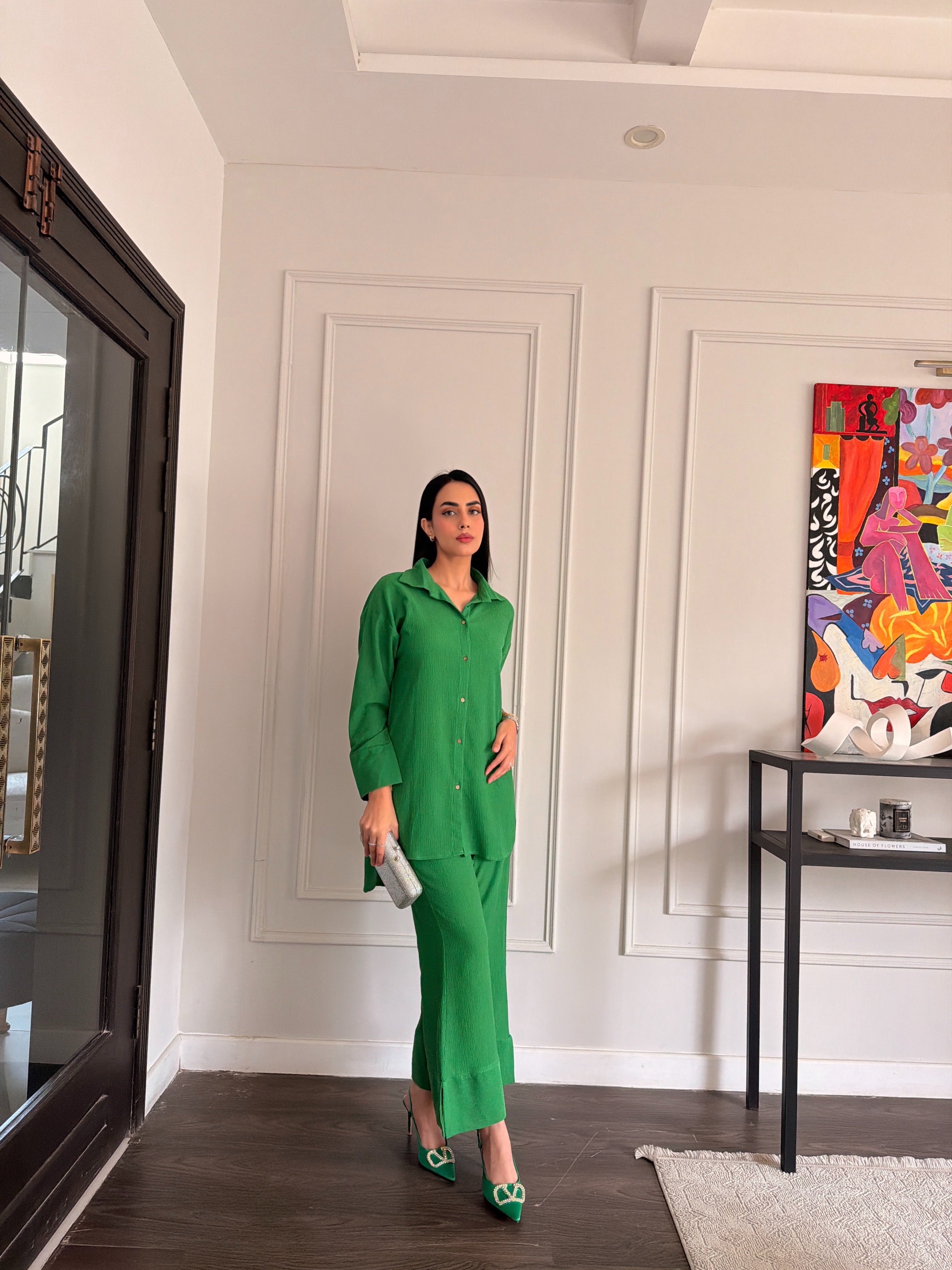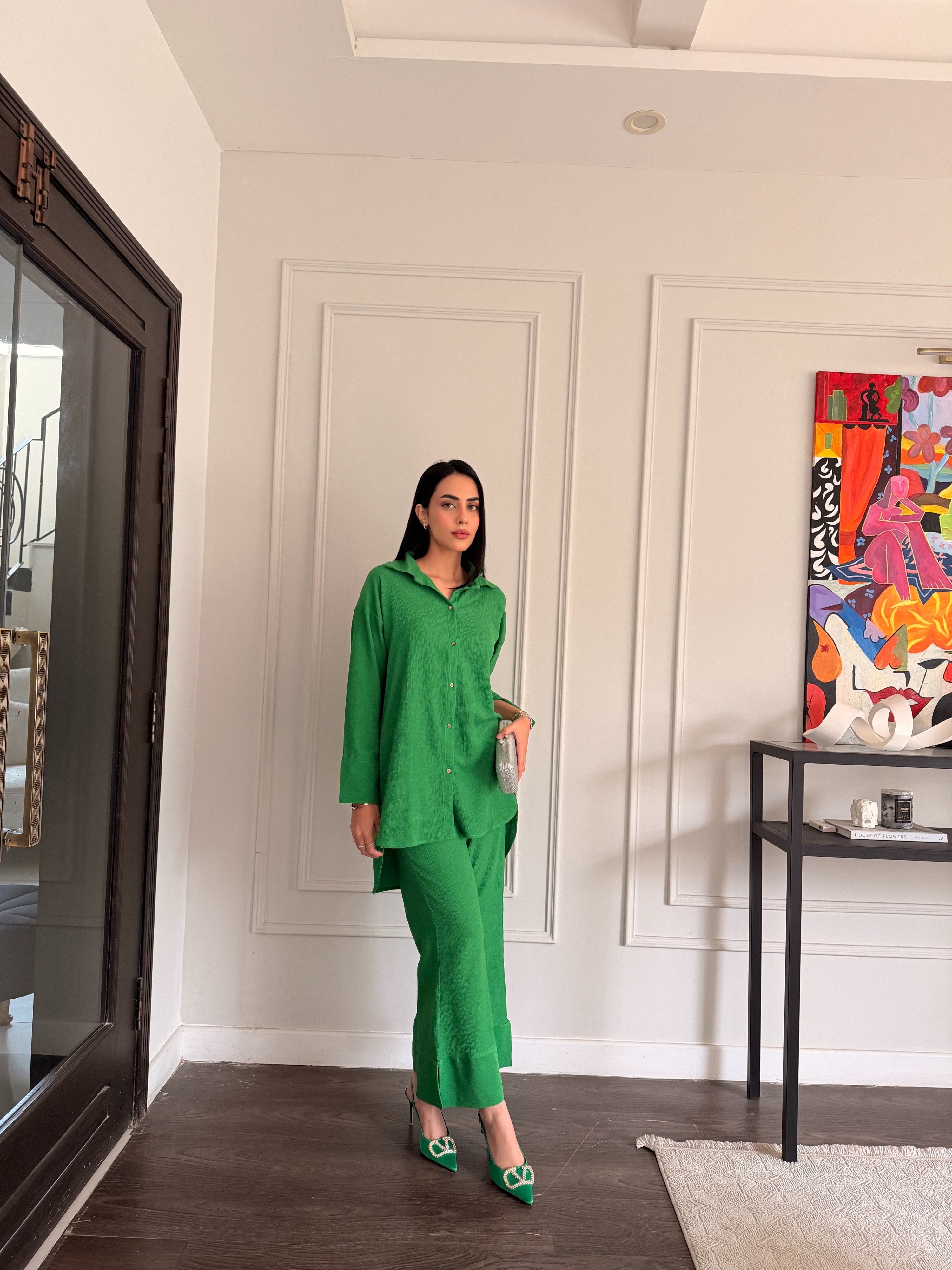 Colour: Parrot Green(Textured summer Fabric)|| Model Height is 5'5 || Model is wearing size "S"