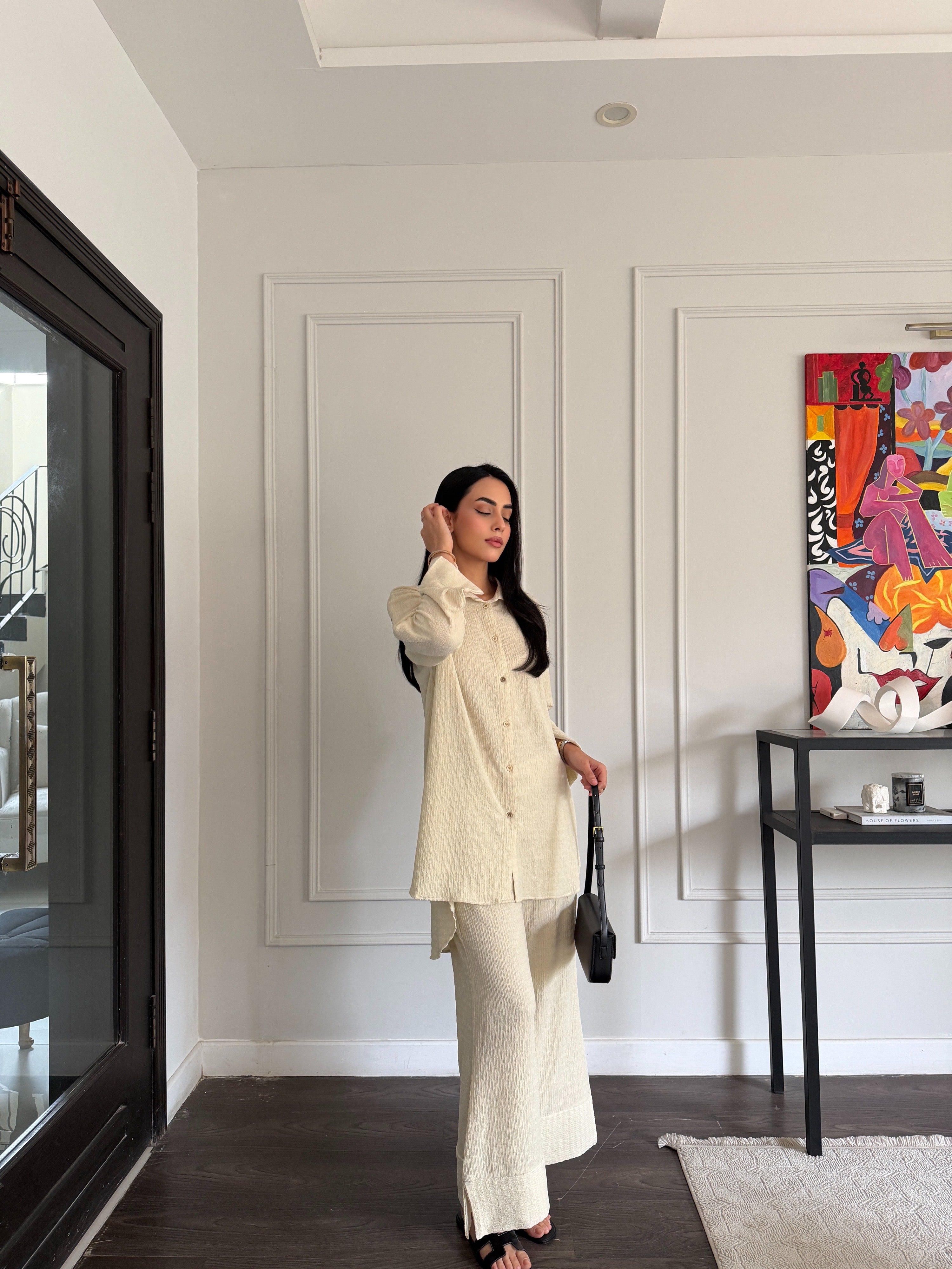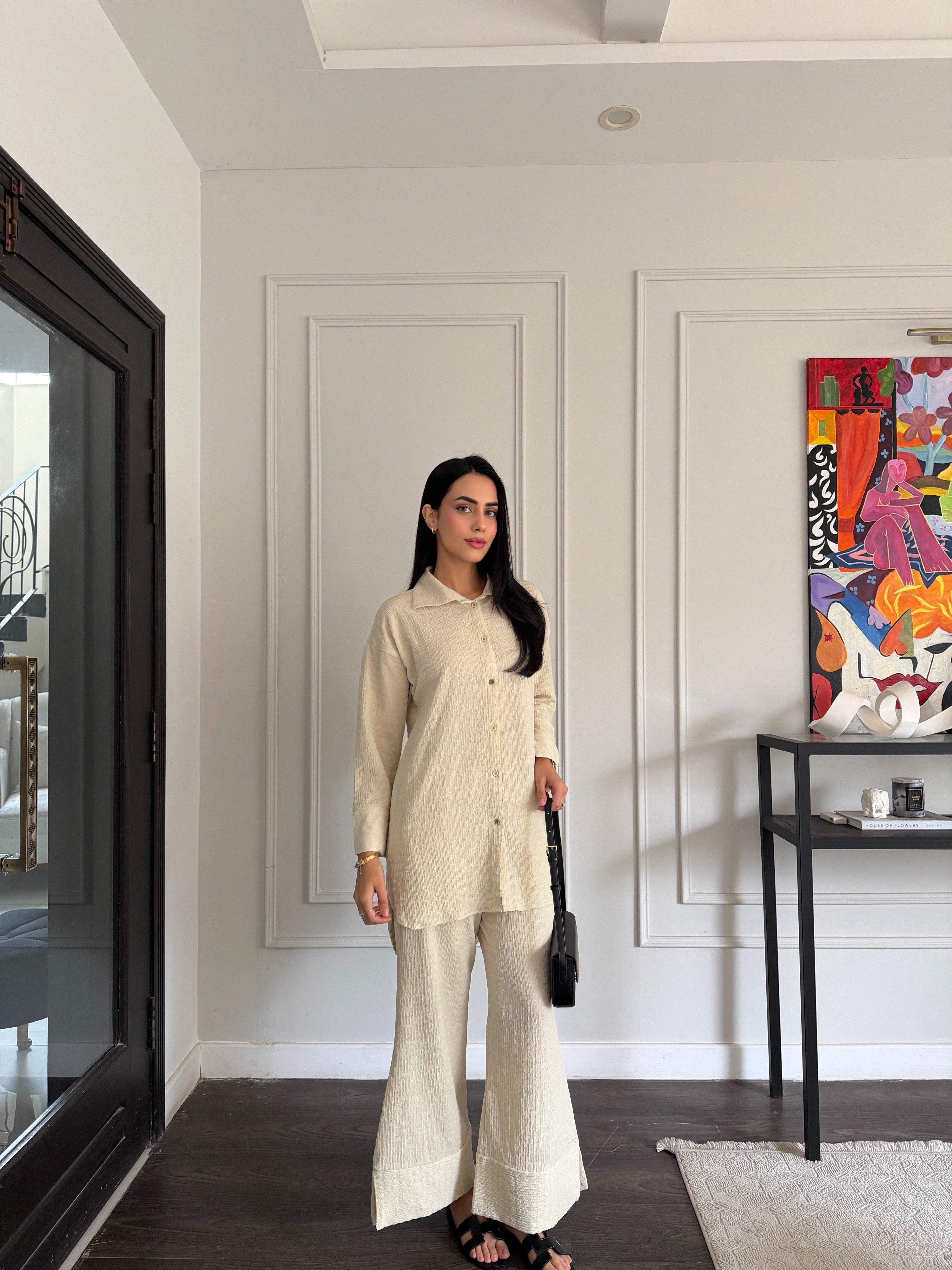 Colour: Behr Beige(Textured summer Fabric)|| Model Height is 5'5 || Model is wearing size "S"